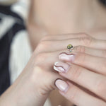A beautiful Green Amber Ring featuring a 6mm, round Baltic Amber Stone set within a subtle sterling silver bezel.