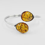 A classic Torque Bangle with a Baltic Beauty twist. At either end of the rounded sterling silver band is a large Baltic Amber stone, polished to perfection with a radiant Orange hue.