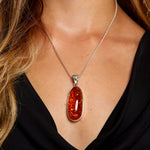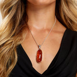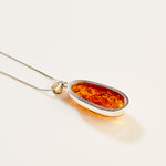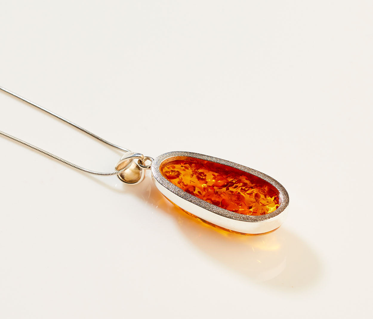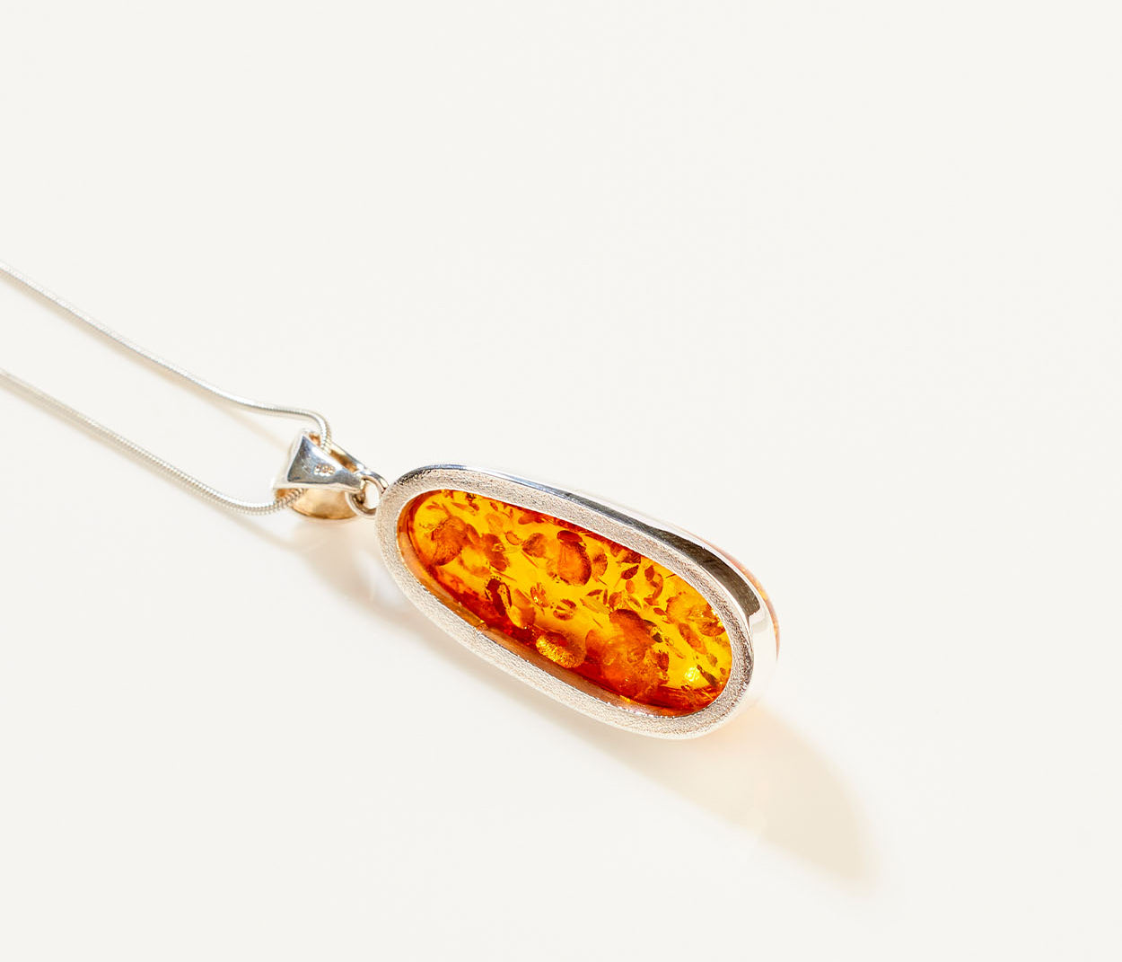 A glowing pendant that embodies the warmth of the sun. The Sunroot Glow features unique Baltic amber, radiating golden light like the first rays of dawn. Set in polished sterling silver, its smooth curves and luminous glow evoke a sense of serenity and natural beauty - a truly one-of-a-kind piece filled with timeless elegance.