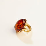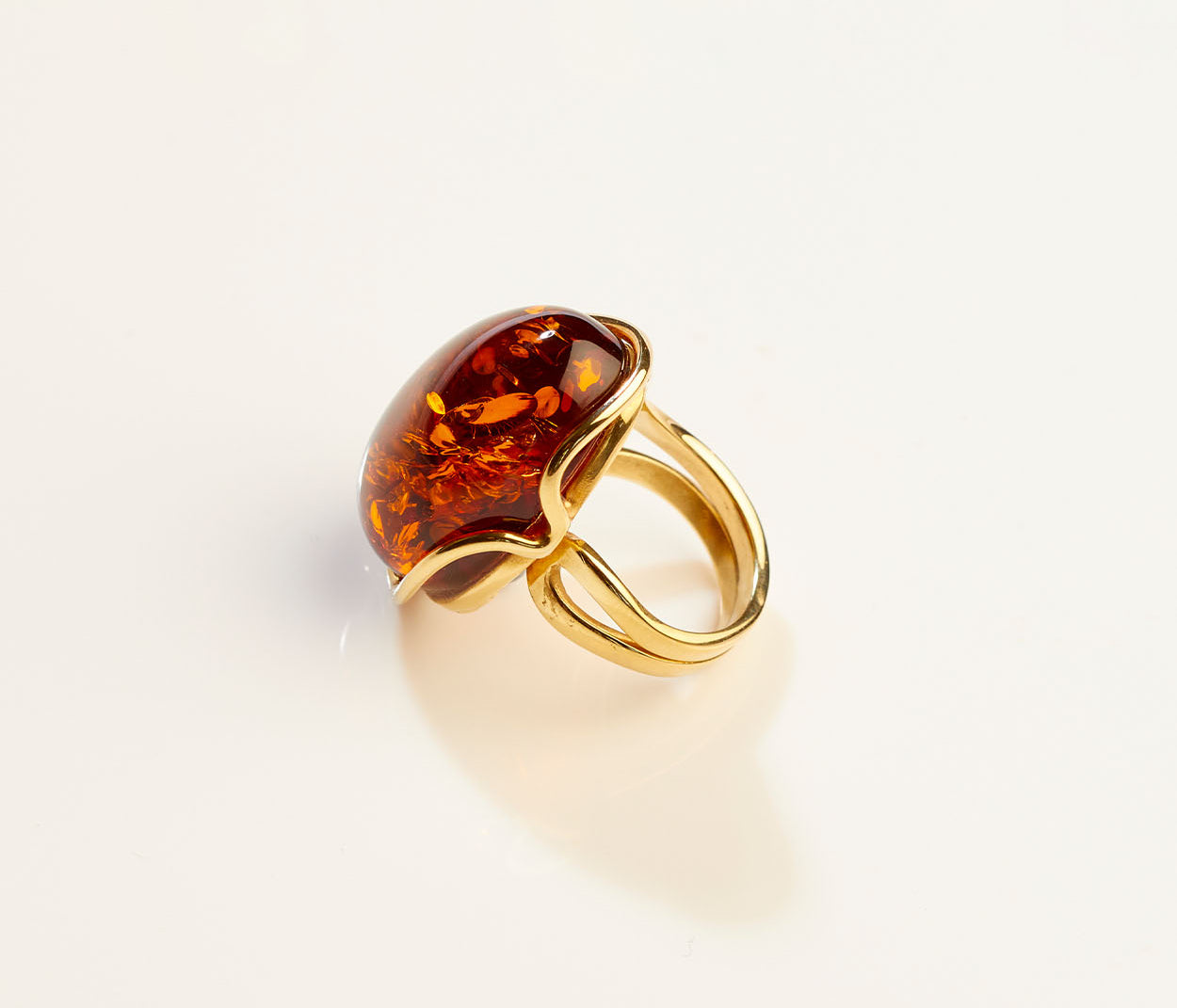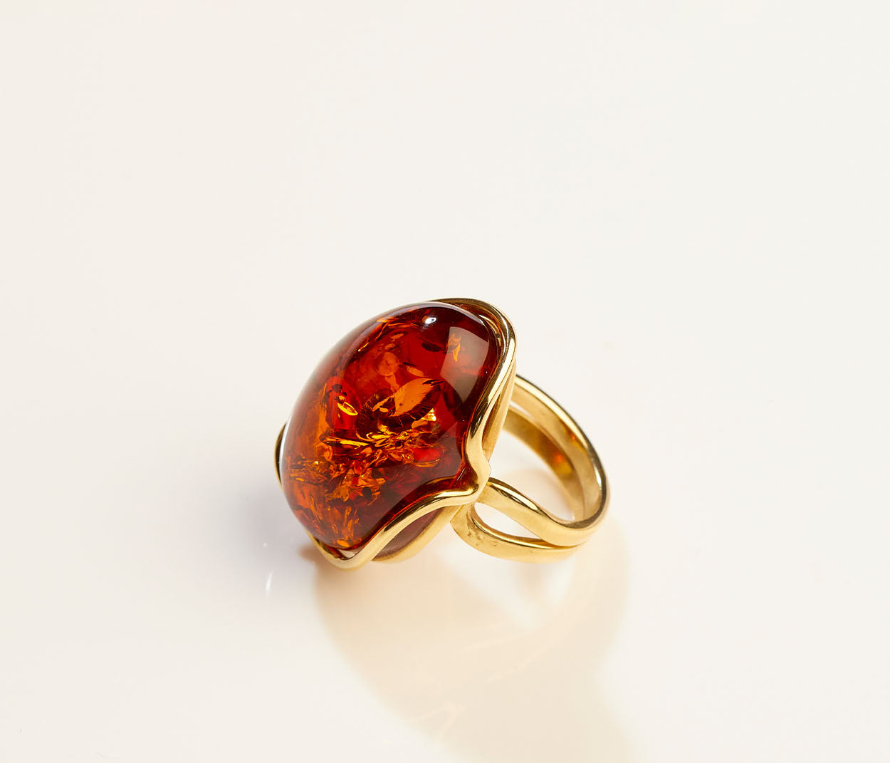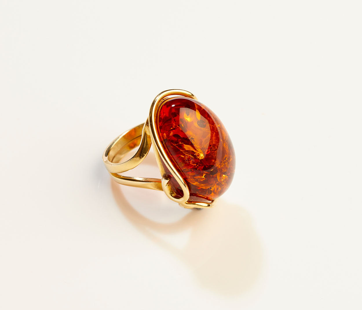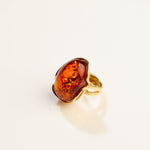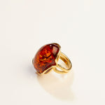 A soft shimmer of golden light in bloom. Floralight features oval cognac amber, glowing with warm honey tones and delicate depth. Set in a gold-plated sterling silver band, the design is feminine and graceful - like a petal touched by sunlight. Radiant, timeless, and one of a kind, this piece carries the quiet elegance of nature’s glow.