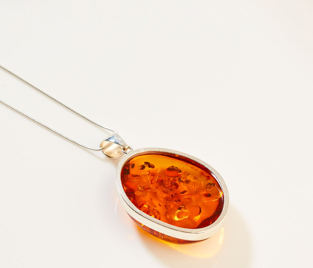 A pendant that captures the gentle shift of the seasons. The Maple Fade features warm, cognac Baltic amber, glowing with rich amber tones like autumn leaves touched by fading sunlight. Set in polished sterling silver, its soft contours and natural warmth evoke the quiet beauty of Autumn - a graceful piece that reflects nature’s subtle transformation.