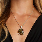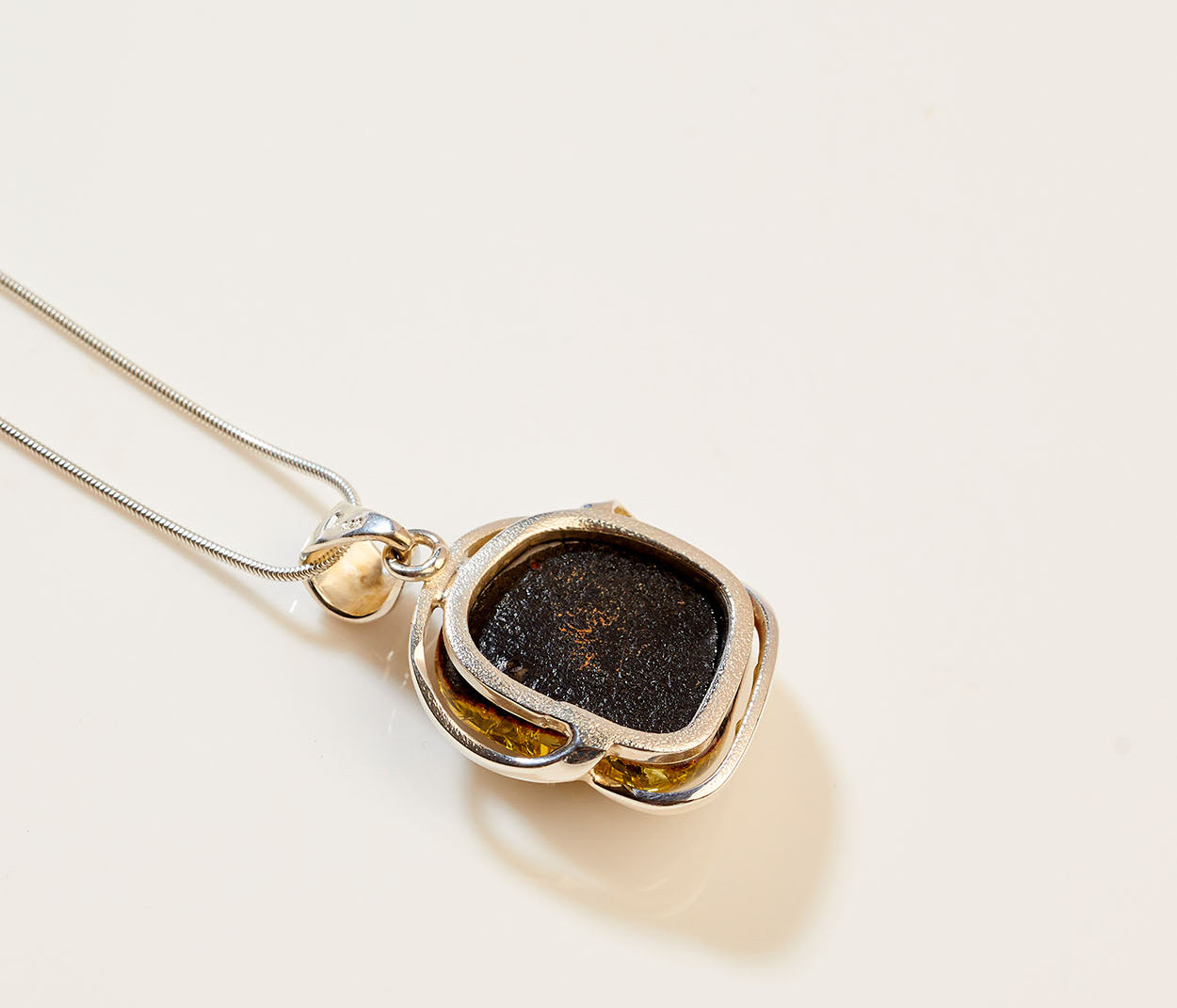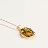 A mysterious pendant inspired by the hidden beauty of the forest. Verdant Veil showcases a rich green amber stone, layered with golden textures like light filtering through a canopy of leaves. Enclosed in a smooth sterling silver setting, it’s a quietly enchanting piece - perfect for those drawn to nature’s deeper, more secretive charm.