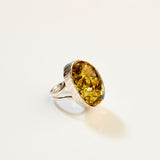 OOAK Mosslight Green Amber Ring (SIZES L-Q)
